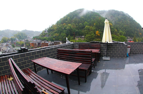 如果你選擇半山別院,在客房的觀景陽(yáng)臺(tái)上,你可以俯瞰大半個(gè)古城,湘西晚清古建筑群,駐立江邊的萬(wàn)民塔。