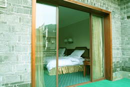 鳳凰江天旅游度假村位于湘西自治州鳳凰縣古城區(qū)內(nèi),東鄰虹橋路交通方便,南有清澈的沱江自西向東川流不息,東南角緊靠蜚聲海內(nèi)外的風雨樓——虹橋,與風姿綽綽的吊腳樓群隔江相望,是鳳凰古城控制區(qū)內(nèi)唯一按準四星級標準建造的、具有仿古建筑特色和現(xiàn)代化室內(nèi)裝修的、集休閑、購物、度假、商務(wù)于一體的旅游度假村。 鳳凰江天旅游度假村主體酒店客房部均為三層仿古建筑,形成以別致的個性小花園為中心的主樓區(qū)和副樓區(qū),目前擁有各種客房110余間,分為:帶觀景陽臺、配備高檔液晶電腦、獨立寬帶上網(wǎng)的商務(wù)房,帶客廳、廚房和露臺花園的豪華套房,以及豪華標準房,所有客房提供免費寬帶接口。同時擁有可容納400人同時用餐的具有民族特色的大型餐廳,大、小會議室和近80個車位的停車場,商業(yè)走廊可讓您盡情享受各種民族特色的服飾與小吃,整個度假村與鳳凰古城融為一體,是您休閑度假、商務(wù)旅游的最佳場所,更是您與古城親密接觸的理想平臺。 |