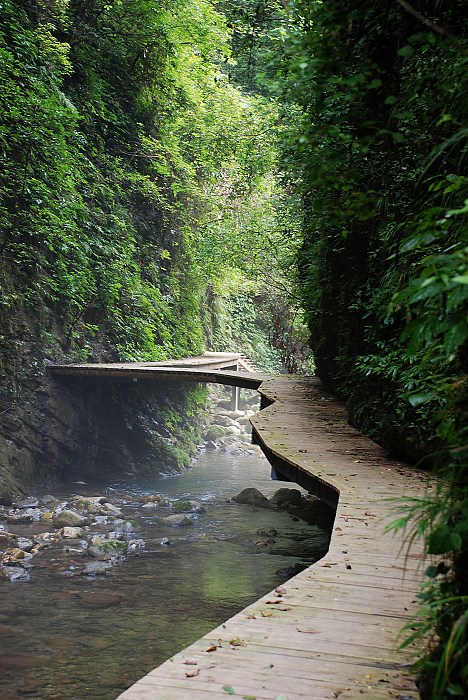 大峽谷中的飛瀑神泉比比皆是,一路游覽下來(lái),讓人目不暇接。峽谷里植被繁茂,空氣清新,涼爽舒適,溪水上彌漫著一層薄霧,宛如來(lái)到世外桃源,讓人煩惱頓消。 張家界大峽谷峽谷間是一條清幽的小溪,沿溪邊是用木板搭建的游道, 張家界大峽谷峽谷內(nèi)不僅有傳統(tǒng)的秀美自然風(fēng)光,還云集有三朝數(shù)代的歷史人文景觀,如記錄李自成與吳三桂慘烈決戰(zhàn)的“千人墳”古戰(zhàn)場(chǎng),反映湘西歷史特色的土匪洞及見(jiàn)證解放初期湘西人民靠天勞作在絕壁間挖鑿的“南方紅旗渠”等。