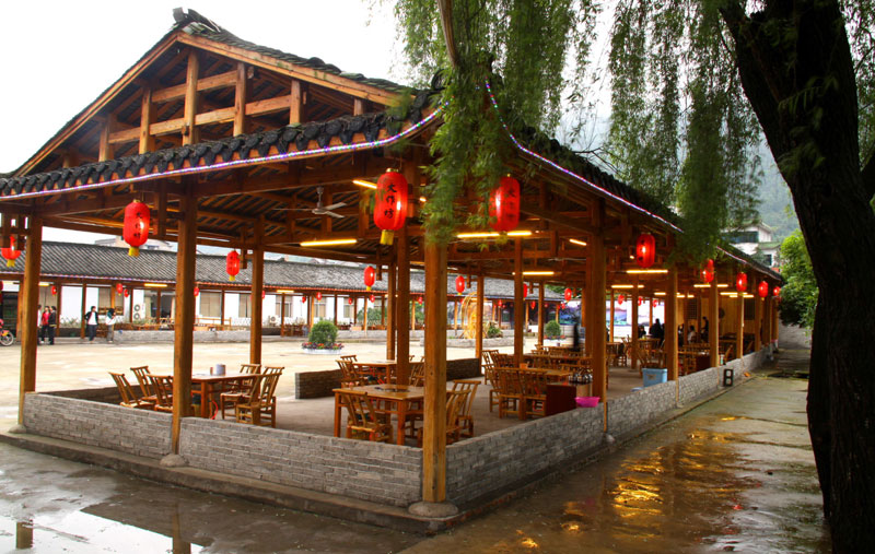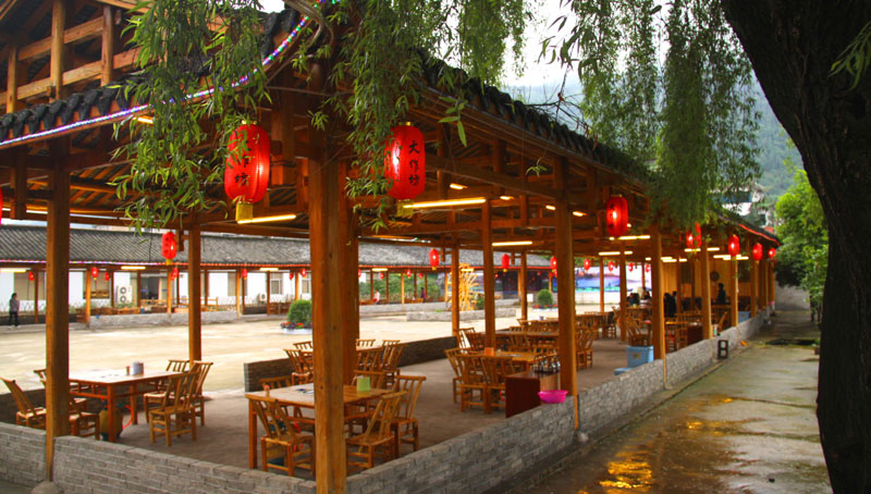 張家界武陵源大作坊美食城是一家集垂釣休閑,特色餐飲,夜市為一體的大型風味美食城!位于風景如畫的武陵源風景區(qū)區(qū)政府所在地,占地3000多平方米,可同時容納400多人就餐。這里也是景區(qū)內匯集土家美食,苗家美食的第一坊!美食城按純木四合院建造,內設酒作坊,豆腐作坊,臘味作坊,糍粑作坊,有垂釣區(qū),燒烤區(qū),菜品自助區(qū),客人廚藝展示區(qū),農(nóng)產(chǎn)品展銷區(qū)等。酒作坊內聘請了民間煮酒大師現(xiàn)場煮酒,你有機會可以現(xiàn)場吃到熱乎乎的頭鍋酒,酒坊內有純米酒,包谷燒,高梁酒,有用野果泡制的各種果酒---燈籠酒,楊梅酒,彌猴桃酒等,更有特色的是把高梁酒放在正在生長的楠竹內,用竹內竹膜的香味把酒增香,十二天就把竹子砍下再放養(yǎng)三天就好了,客人要吃現(xiàn)場鋸竹筒酒吃!豆腐坊也是聘請民間老農(nóng)現(xiàn)場用自制的石磨做豆腐,在這里你可以吃到真正有豆香味的原汁原味的石磨豆腐,和渣,菜豆腐,豆腐腦等豆制品!臘味作坊里有冬天用各種香料熏制的正宗湘西藏臘肉,臘豬頭肉,臘香腸,臘豬腳,各種臘制品臘野味等。糍粑坊每天在晚上人多用餐高峰時現(xiàn)場打滋粑,客人也可以自己參與打糍粑這個快樂的過程,想受過年時才有的熱鬧情景!在垂釣區(qū)里我們放養(yǎng)有很多野生魚類,有時間了你可以來這里休閑垂釣,得到的魚我們就會給你現(xiàn)場加工,有清沌的,紅燒的,青椒燜的,酸湯的,都很好吃哦。燒烤區(qū)里,我們高薪聘請了燒烤大師為你現(xiàn)場制做,你也可以自己動手,有烤羊排羊腿,各種串烤,烤全魚,烤全兔等,還有各種鐵板烤可以自己炒著吃!菜品自己選區(qū)里有各種山野菜,壇子菜,干菜,臘味等,有各種鮮活的魚類,河蛘,水魚,田螺,龍蝦等,有各種農(nóng)家的土雞土鴨等,有各種鮮活的野味等你來享受美味呢!客人廚藝展示區(qū)里老板特設制地幾口大鍋, 很有特色的是, 你可以自己親自下廚, 酸甜苦辣任您自由調配 。 煮好了, 大家就圍著這“灶臺”合一的飯桌享受張家界的美食了。(張家界的三下鍋是很有特色的,是邊煮邊吃的, 只是這“三下鍋”是“大型三下鍋”而已。到張家界旅游,吃張家界的“三下鍋”是一種獨有的旅游體驗,到大作坊吃“大型三下鍋”,則更將會為你的旅程增添一份難得的回味。農(nóng)產(chǎn)品展銷區(qū)里展示著當?shù)鼗蛳嫖鞯貐^(qū)最暢銷的農(nóng)產(chǎn)品食品:正宗湘西鄉(xiāng)里臘肉,香腸,各種臘制品,洗車河霉豆腐,靈潔牌剁椒辣醬系列,菌油,正宗茶籽油,苗家酸湯,鄉(xiāng)里正宗葛粉,大壇湘西五糧液,竹簡敲敲酒,張家界茅巖霉茶,野生蜂蜜,高山葛粉,張家界第一山珍巖耳,葛根片等等! 武陵源大作坊美食城是武陵源景區(qū)規(guī)模最大,品種最多,環(huán)境最優(yōu)雅的休閑美食城。有各式小炒火鍋,岳陽特色燒烤系列,鐵板燒系列,鴨霸王系列,潮州特色砂鍋粥系列,涼菜醬菜系列,湘西地方特色小吃系列等。美食城整晚邀請著名的流浪歌手阿彪為你獻歌助興,并可同阿彪歌聲互動,在這里你可以放下一天的疲勞,拋開一身鎖事,度過美好的每一分鐘......武陵源夜市大作坊,是張家界旅游體驗的重要一站,它受到如此多的游客的熱捧,是因為,在這里能釋懷,是因為在這里,能體驗張家界旅游的文化內涵, 是因為在這里,能給你一個自由的空間......