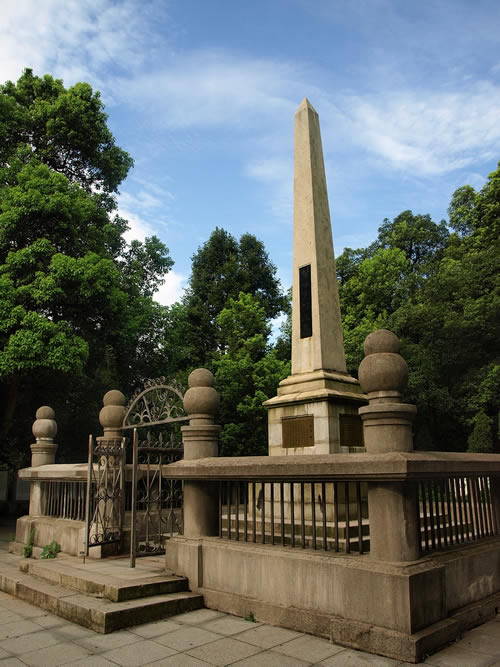 在岳麓山上。墓由三層臺(tái)階百余級(jí)踏步導(dǎo)入,墓碑為一四棱形的整塊4乳白色巖石琢成,全高約10米,因地處岳麓山高峰開(kāi)闊處,顯得格外聳拔、挺秀、眺望湘江江,長(zhǎng)沙景物盡入眼底。黃光(1874—1916),朱名軫,號(hào)杞園,又號(hào)克強(qiáng),湖南善化(今長(zhǎng)沙)人,辛亥革命重要領(lǐng)導(dǎo)人,史有“孫黃”之稱(chēng)。1904年組織華興會(huì),翌年8月與孫中山、章太炎等人組織中國(guó)同盟會(huì),曾生動(dòng)并領(lǐng)導(dǎo)欽州、廉州(治今廣西合浦)、鎮(zhèn)獻(xiàn)花(今友誼關(guān))、河口、廣州等地區(qū)反清戰(zhàn)役起義,任民軍戰(zhàn)時(shí)總司令。南京臨時(shí)政府成立,任陸軍總長(zhǎng)。袁世凱稱(chēng)帝后,任討袁軍總司令。1914年赴美醫(yī)病,1916年病重回國(guó),10月31日于上海病故,時(shí)年43歲,次年移柩長(zhǎng)沙,國(guó)葬于岳麓山。為全國(guó)重點(diǎn)文物保護(hù)單位。