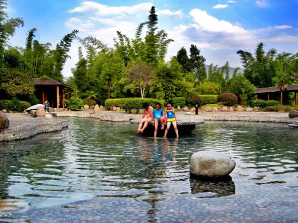 熱水溫泉,位于湘、粵、贛三省交界的熱水鎮(zhèn),是我國(guó)南方水溫最高,流量最大,水質(zhì)最好,熱田面積最寬的天然溫泉。熱水水溫一般為 91.5℃,最高達(dá)98℃。熱泉水無(wú)色透明,稍有硫化氫氣味,為低礦化、低硬度、高溫弱堿性重碳酸、硫酸-鈉型氟及硅質(zhì)礦泉水,含硅、鈉、鉀、鈣、鍶、硼、氟、氡等三十多種對(duì)人體有益的元素。其中“氡”元素正常情況含量30IMA即可做為生殖系統(tǒng)輔助治療藥物,根據(jù)聯(lián)合國(guó)教科文組織官員實(shí)地考察,福泉山莊熱泉水“氡”含量達(dá)到了130IMA左右,對(duì)治療不孕不育的生殖系統(tǒng)疾病有較好的輔助治療效果。