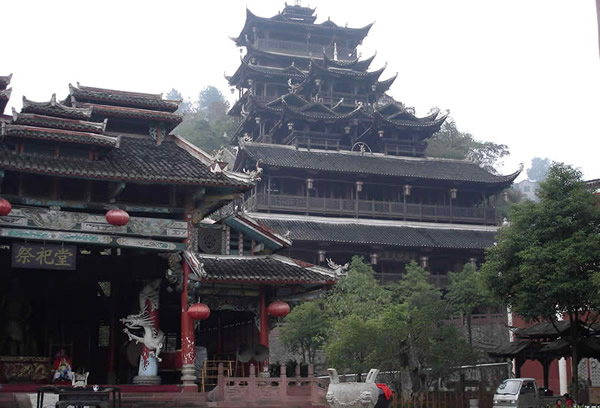 土司城 土司制度初建于五代十國時(shí)期,到了明朝己非常成熟了,土司王有無上的權(quán)威,在湘西有三大土司王分別是桑植土司向氏、永順土司王彭氏、慈利土司王張氏,其中又以永順溪州土司彭氏實(shí)力最強(qiáng)。其它土司王都為自己修建一座土司城,唯有彭氏分別在永定、永順修建了二座土司城。在永定的土司城內(nèi),彭氏為顯示其地位,修建了湘西最高的一座高達(dá) 48米,共12層的吊腳樓,整棟樓竟無一根鐵釘,堪稱土家吊腳樓建筑史上的奇跡,此樓于2002年9月被評(píng)為最高吊腳樓,榮獲世界吉尼斯之最,與此同時(shí)土司城內(nèi)舉辦一千人參加表演的毛古斯舞蹈活動(dòng)獲得圓滿成功,同時(shí)獲得世界吉尼斯之最。進(jìn)入土司城,首先看到土司城迎賓儀式,土家漢子迎賓鼓,吹牛角、放沖,土家姑娘攔門歌,敬攔門酒,進(jìn)入城內(nèi),在祭祀堂前舉行百人土家大祭祖活動(dòng),男女老少唱擺手歌、跳擺手舞,登世界最高的吊腳樓九重天,參觀土家族千百年來文化展示。到土家山寨,聽土家歌,賞土家族最有代表風(fēng)俗哭嫁,三棒鼓,花燈等民俗表演。