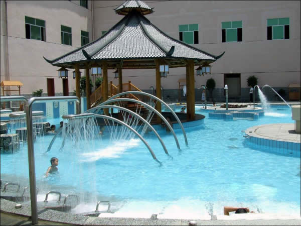 慈利縣萬福溫泉 萬福溫泉以福為文化為背景,建有四星級溫泉酒店(萬福樓),有140多間標(biāo)準(zhǔn)雙人房、單人房、豪華套房及董事套房;中、大型會議室、多功能宴會廳3間;以福文化為基礎(chǔ),在萬福溫泉的朝陽地帶建設(shè)40多個功能各異、大小不一、錯落有秩的室內(nèi)SPA池、露天溫泉池,另有貴賓休息廳、香薰屋、山頂溫泉沖浪、空中溫泉漂流等靜、動態(tài)溫泉養(yǎng)生娛樂項(xiàng)目,把福文化溶入到自然的溫泉沐浴中,使廣大游客在福文化的環(huán)繞中享受大自然獨(dú)特的恩賜;餐飲部擁有300多人的用餐大廳及包房,推出湘菜系列、突出地方名菜、土家風(fēng)味,集百家之長,創(chuàng)獨(dú)特風(fēng)味。另有KTV、桑拿、保健、美容、棋牌、臺球、健身房、購物中心等娛樂及其它配套設(shè)施。整個建筑別具一格,氣勢恢弘,功能完善,堪稱張家界溫泉旅游的又一大奇觀。