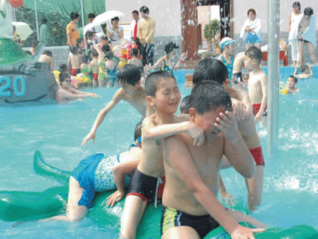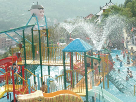 兒童游樂園 卡通噴泉、急速滑梯……這里的童話世界讓您的孩子恍若天使般幸福、快樂!銀鈴般的笑聲,充滿童稚音的歌聲,響徹云霄。美妙的孩童時光從這里開始,五彩斑斕的人生從這里起步。水溫36-38度,專為兒童設(shè)計(jì),設(shè)有水上滑道和花樣繁多的兒童小品:蘑菇噴淋、水槍、浮漂等,讓您的孩子盡情釋放活潑快樂。