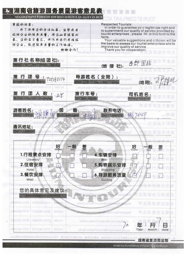 【該游客接待反饋意見單掃描】
